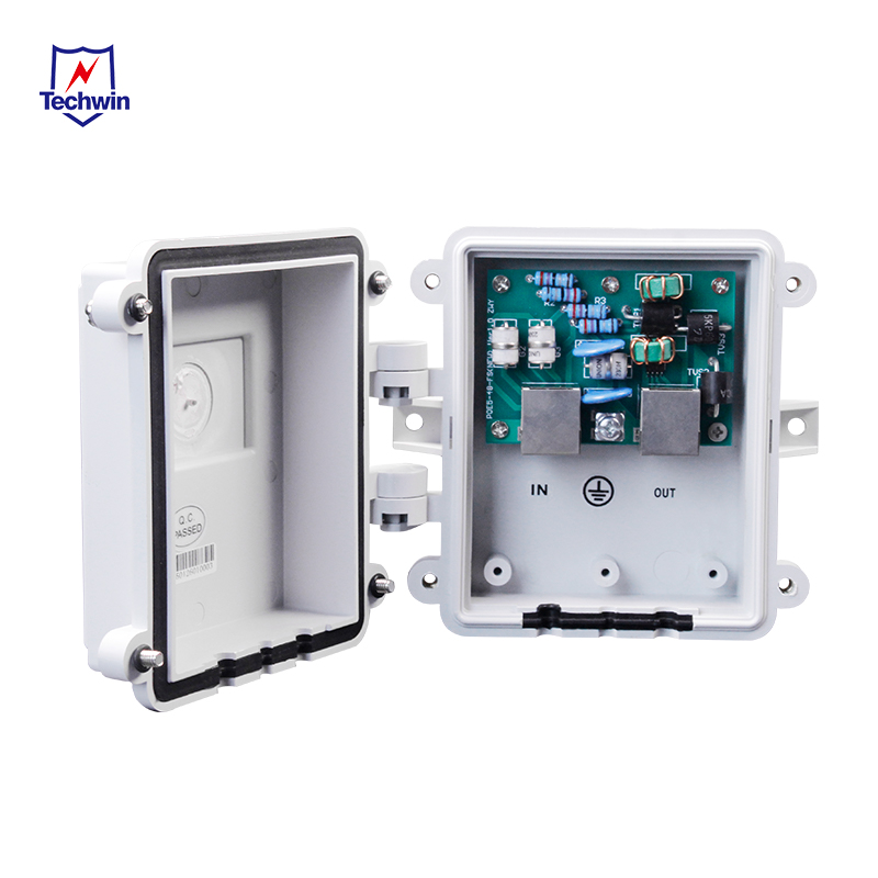 Techwin Industrial POE (Power over Ethernet) SPD (Surge Protection Device) is specially designed for Ethernet switches. The POE switch will not be damaged by lightning overvoltage, induced overvoltage, and electrostatic discharge.