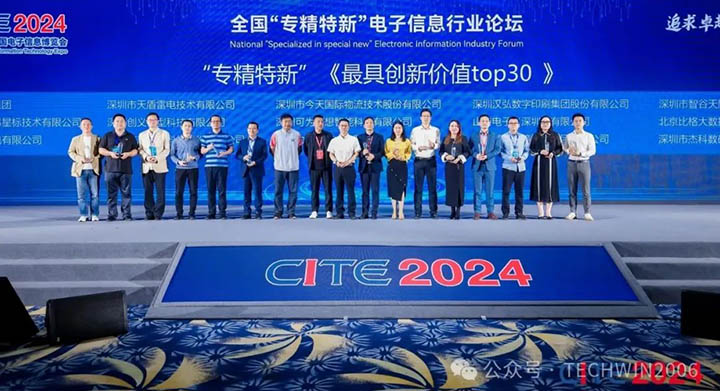 On April 9, at the awards ceremony of the 12th China Electronic Information Expo and the National "Specialized, Advanced and New" Electronic Information Industry Forum held in Shenzhen, Techwin successfully won the honor of the "TOP30 Most Innovative Value" list in 2024 with its outstanding technical strength and innovation capabilities.